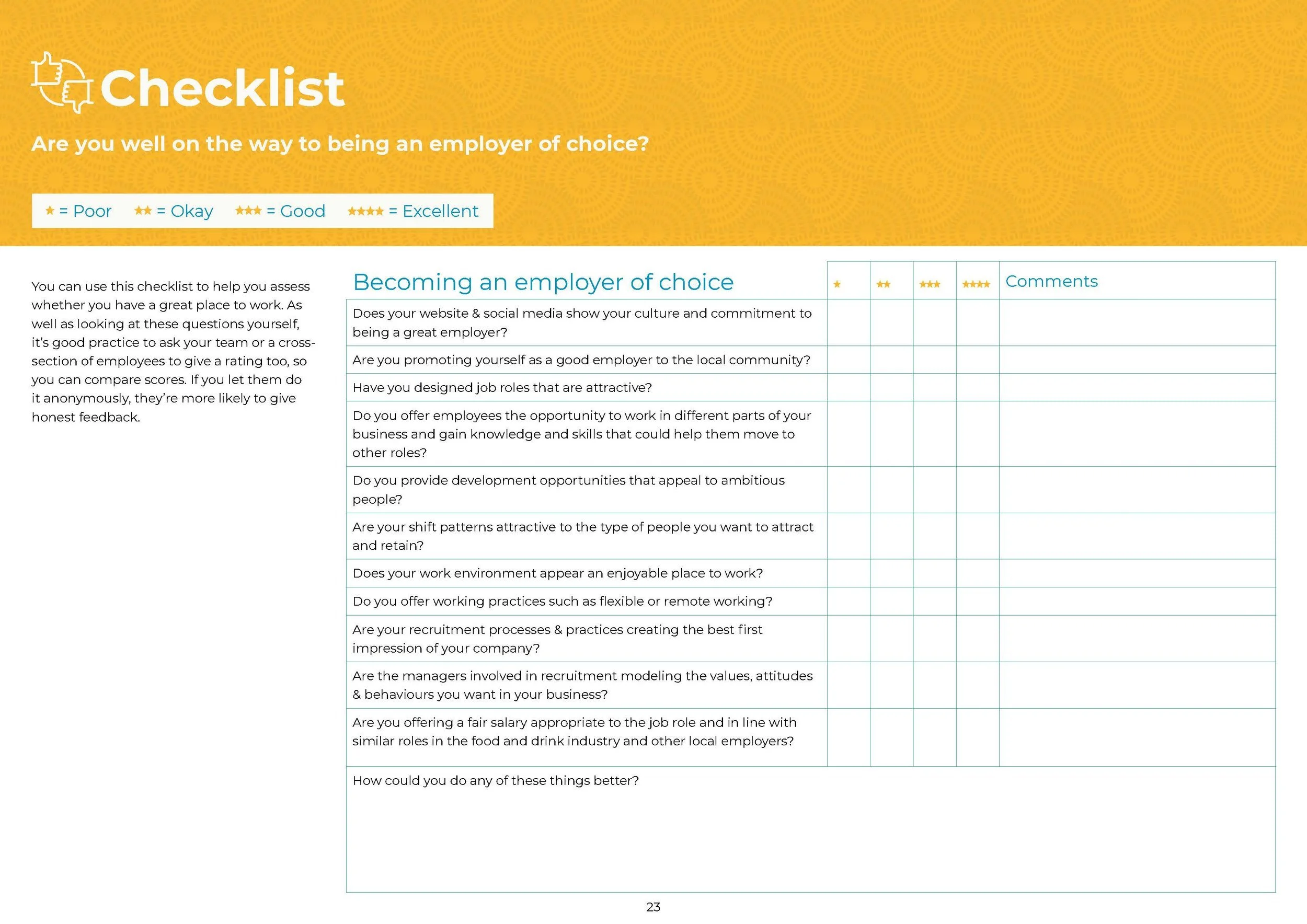 You’ll be competing with other businesses in the food and drink industry and employers in other industries. You may also need to work on your attractiveness as an employer.