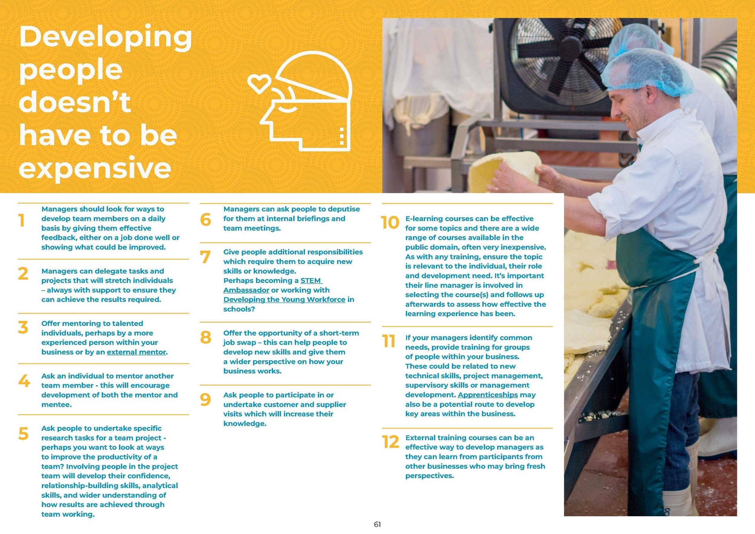 These range from tips on mentoring and feedback, job swaps and research projects and help you look at developing your workforce from a wider perspective.